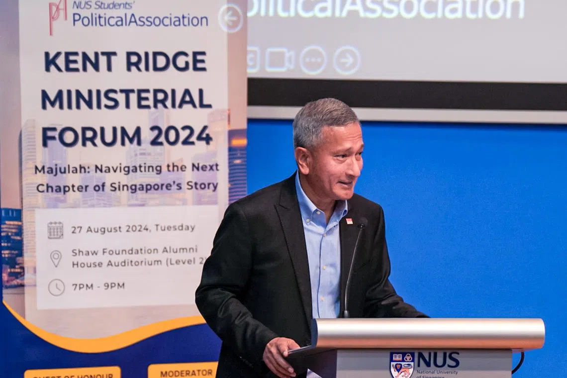 Dr Balakrishnan berkata demikian semasa menghadiri forum bertajuk, ‘Majulah: Navigating The Next Chapter Of Singapore’s Story’ (Majulah: Mengemudi Bab Seterusnya Dalam Kisah Singapura), yang diadakan di auditorium Rumah Alumni Yayasan Shaw di Universiti Nasional Singapura (NUS).
