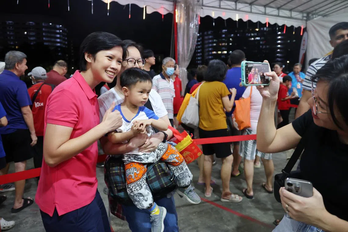 Semasa acara pelancaran sambutan Tahun Baru Cina di Yishun, seorang peguam hak milik intelektual (IP) dilihat bermesra dengan penduduk kawasan itu, di samping Anggota Parlimen (AP) GRC Nee Soon dari Parti Tindakan Rakyat (PAP) pada 26 Januari.