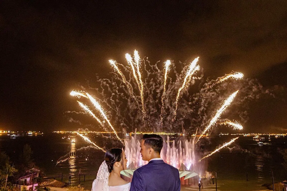 Usahawan Encik Muhammad Lutfi Zaifuddin, 28 tahun, dan pereka bentuk 3D, Cik Nur Atikah Ayob, 27 tahun, melangsungkan perkahwinan mereka di Home Team NS Bedok pada 28 Julai 2024.