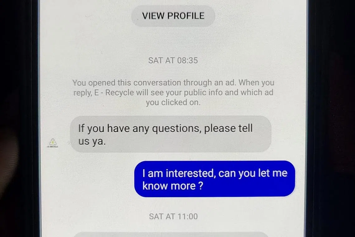 Mangsa, seorang pegawai khidmat pelanggan, yang hanya mahu dikenali sebagai Cik Abdul, telah melihat satu iklan Facebook pada 23 September lalu daripada pihak yang mendakwa sebagai syarikat kitar semula E-Recycle yang berminat membeli perabot dan barangan elektronik terpakai.