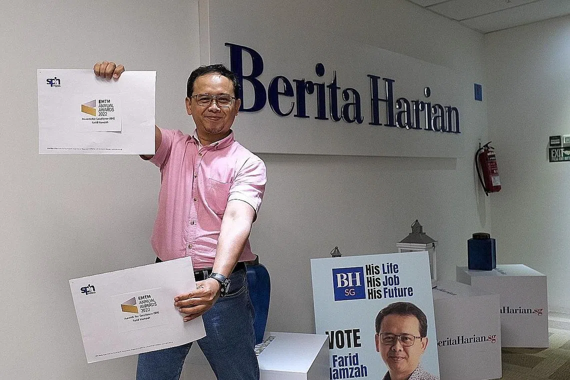 Pada Isnin, beliau menerima dua pencalonan - Wartawan Terbaik dan Berita Terbaik di anugerah berita tahunan Pengurusan Kumpulan Media Inggeris/Melayu/Tamil (EMTM) SPH Media Trust yang diadakan di Auditorium SPH.