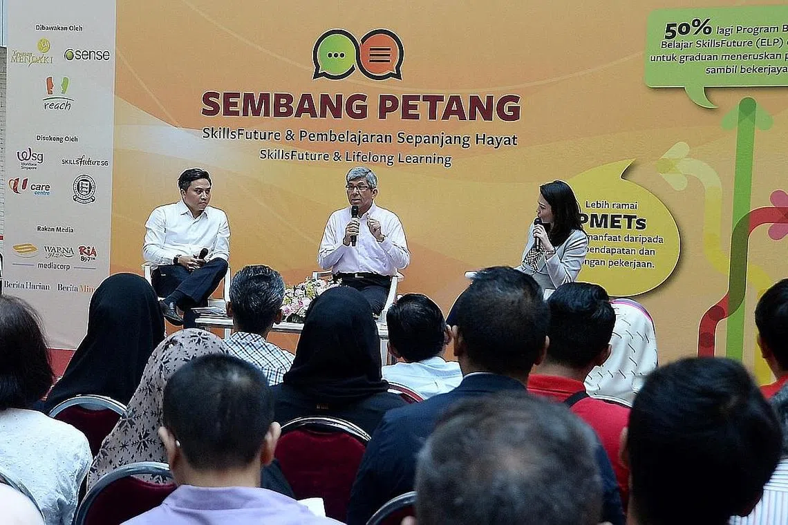 USAH TAKUT: Dr Yaacob (tengah) berkata terdapat peluang yang datang dengan perubahan teknologi kerana ia berupaya menjadi alat yang membawa ke arah peningkatan. Beliau bersama Encik Saktiandi dalam sesi Sembang Petang 2017 di pusat beli-belah OneKM Mall semalam, dan moderator perbincangan, Cik Hazlina Abdul Halim. - Foto JOHARI RAHMAT -