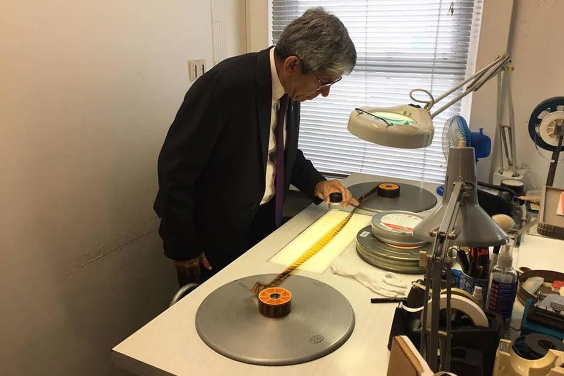TINJAU USAHA PENDIGITALAN: Dr Yaacob memerhatikan filem lama di arkib filem, televisyen dan bunyi New Zealand, Nga Taonga Sound & Vision. - Foto FACEBOOK / DR YAACOB IBRAHIM -