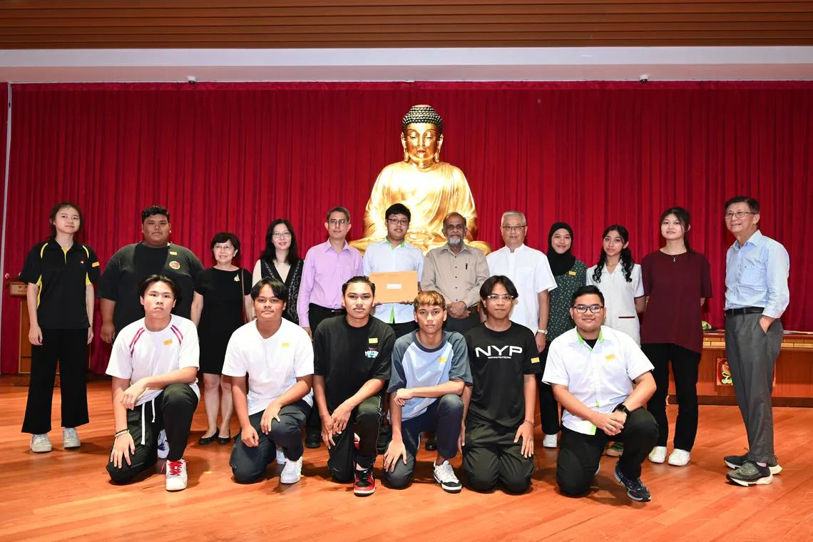 BANTU GENERASI MUDA: Yayasan Pendidikan Singapore Buddhist Lodge (SBLEF) telah menganugerahkan sebanyak $22 juta demi membantu pelajar dalam perjalanan pendidikan mereka. Dalam gambar ialah Pengerusi SBLEF, Cik Tan Kiat Gee (diri, empat dari kiri); tetamu terhormat, Menteri Negara (Ehwal Dalam Negeri merangkap Pembangunan Negara) Profesor Madya Dr Muhammad Faishal Ibrahim (diri, lima dari kiri); Pengarah Utama, Organisasi & Hubungan Antara Agama, Jamiyah Singapura, Encik S.M. Saleem (diri, enam dari kanan); dan Naib Presiden Pertama Persekutuan Tao, Encik Ling Kin Huat (diri, lima dari kanan). - Foto SBLEF
