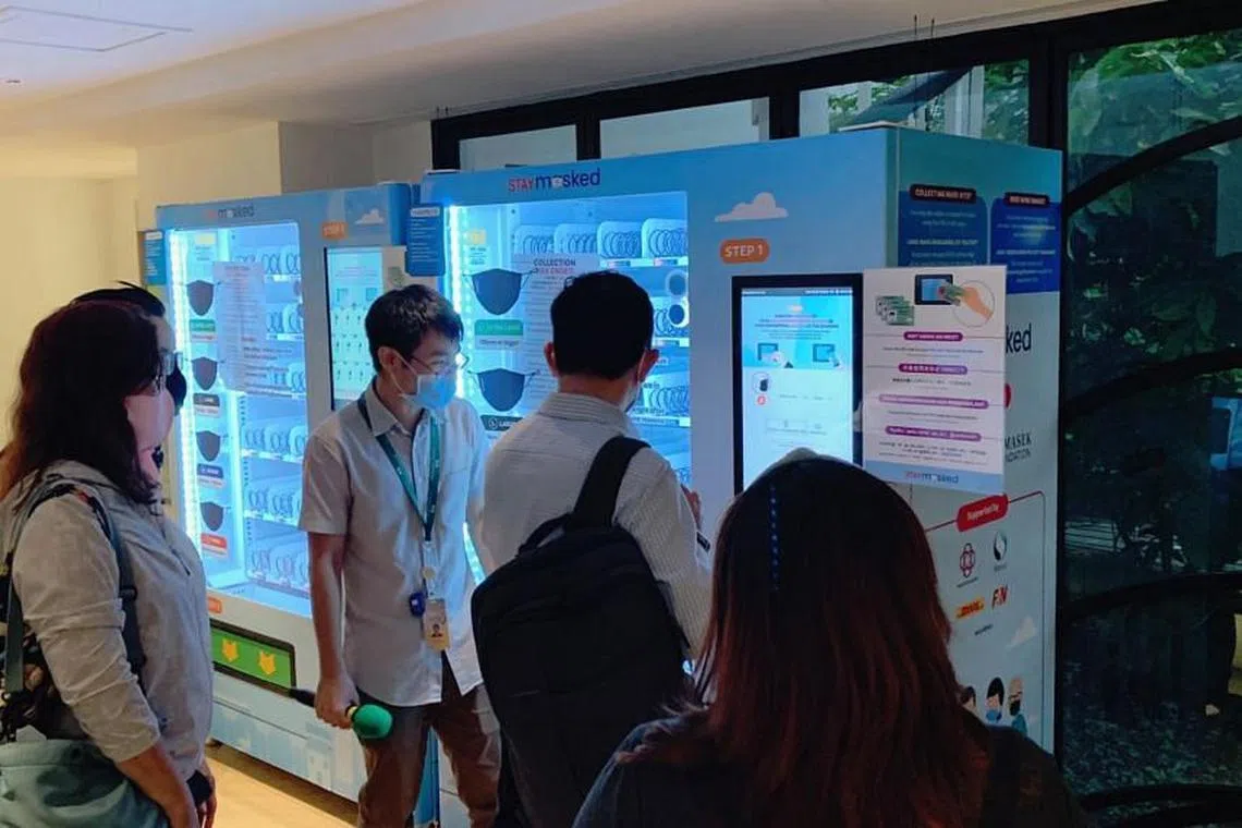 Mesin layan diri dengan muatan pelitup di balai rakyat ini juga telah dipindahkan ke blok HDB berhampiran kerana balai rakyat digunakan bagi proses vaksinasi kebangsaan, tambah Cik Ho Ching.