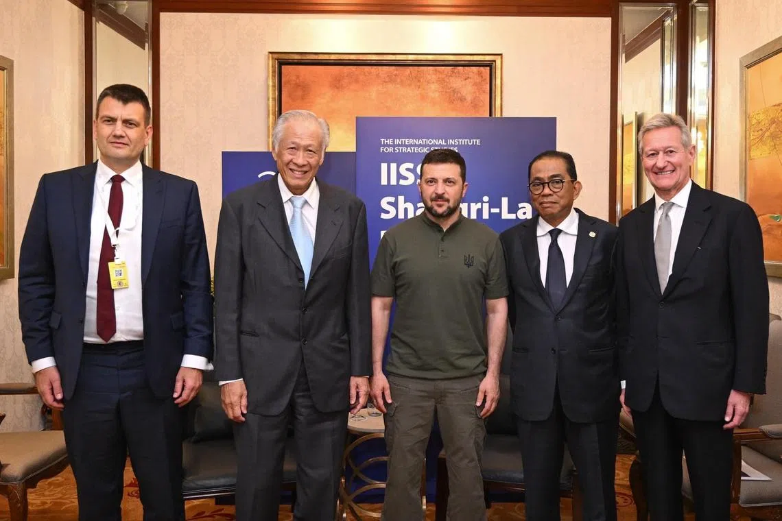 Encik Zelensky, yang sampai di Singapura pada 1 Jun dengan Menteri Pertahanan Ukraine, Encik Rustem Umerov, berucap sebagai ulasan tambahan saat akhir perbincangan bertajuk ‘Membayangkan Semula Penyelesaian untuk Keamanan Sejagat dan Kestabilan Serantau’.