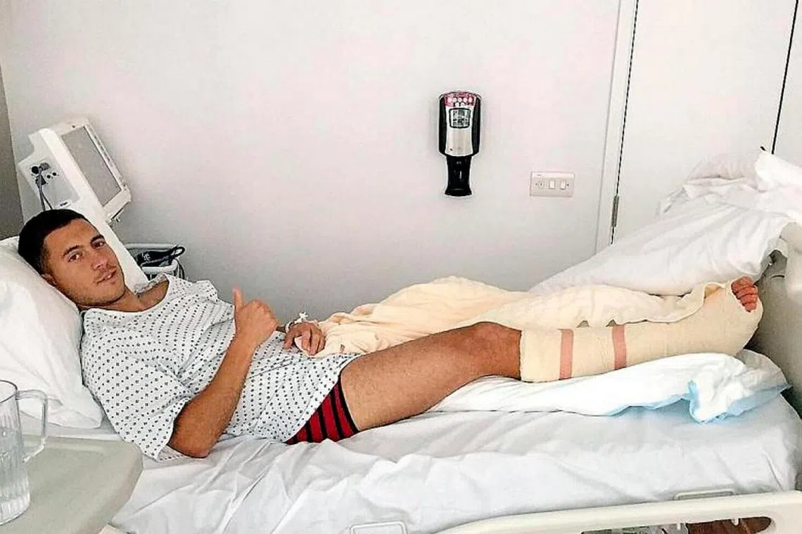 DI KATIL HOSPITAL: Eden Hazard menjalani pembedahan buku lali kanannya dan dijangka tidak dapat beraksi selama tiga bulan. - Foto TWITTER -