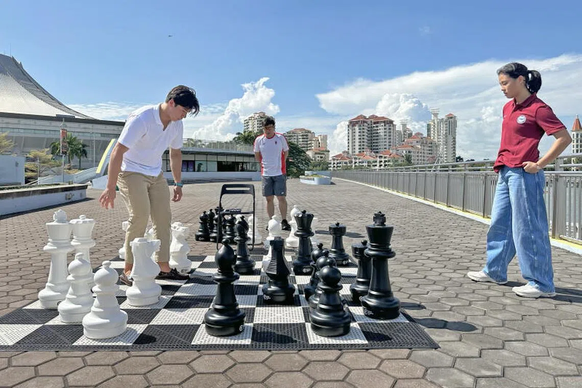 Menjelang Kejohanan Catur Dunia Persekutuan Catur Antarabangsa (Fide) yang dihos Singapura di Resorts World Sentosa dari 23 November hingga 15 Disember, dua bintang terbesar sukan Singapura bertukar bidang masing-masing untuk bersaing dalam perlawanan catur blitz yang mengujakan di papan catur gergasi.