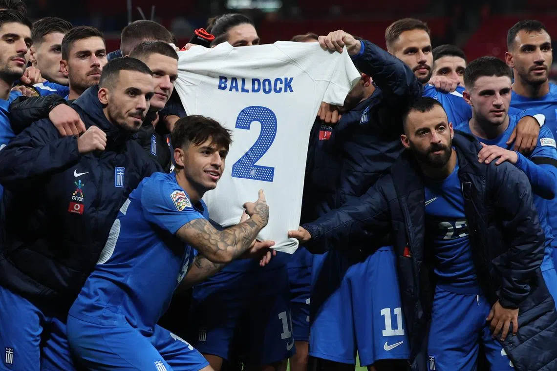 Penghormatan bagi bekas pemain Greece, George Baldock, yang meninggal sehari sebelum perlawanan Liga Negara-Negara