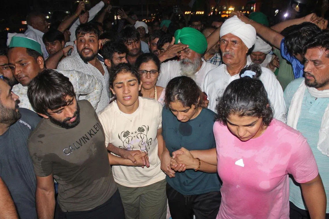Pemenang pingat Olimpik, Sakshi Malik dan Bajrang Punia serta juara dunia dua kali, Vinesh Phogat, merupakan antara mereka yang diberkas dan kemudian dibebaskan polis pada Ahad,