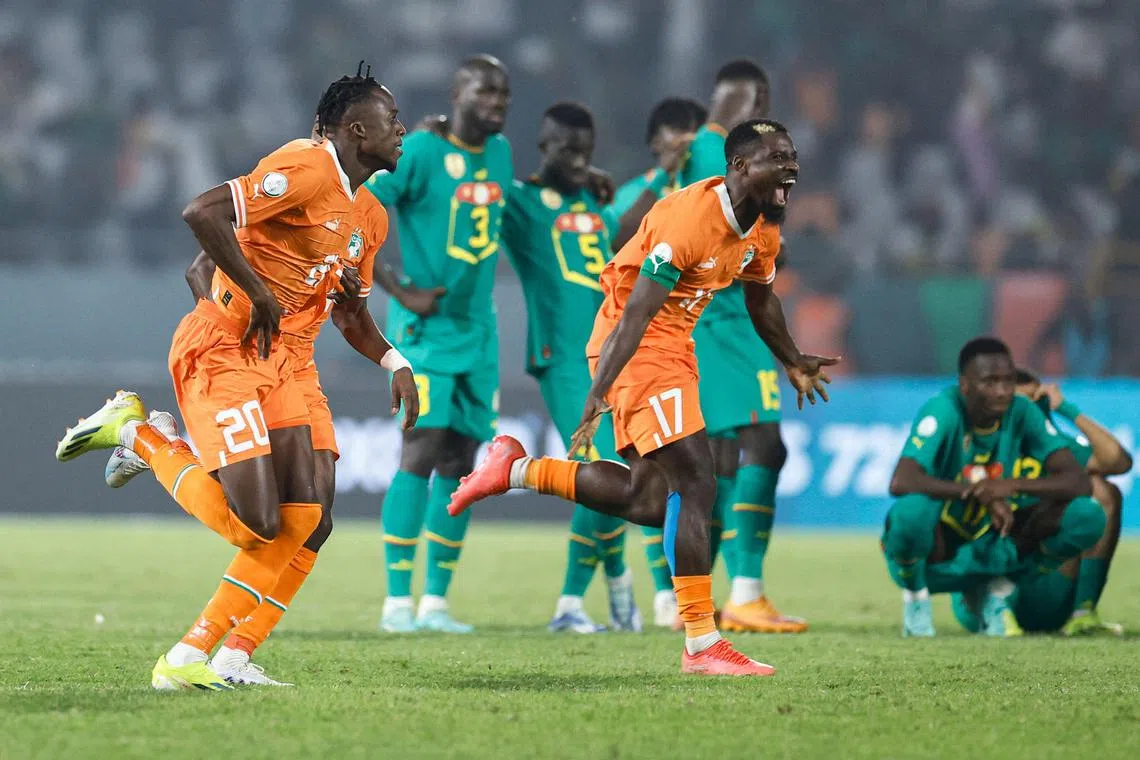 YAMOUSSOUKRO (Ivory Coast): Juara bertahan Piala Negara-Negara Afrika, Senegal, tersingkir daripada kejohanan itu setelah tewas kepada tuan rumah Ivory Coast 4-5 menerusi sepakan penalti dalam perlawanan kalah mati pada 29 Januari.