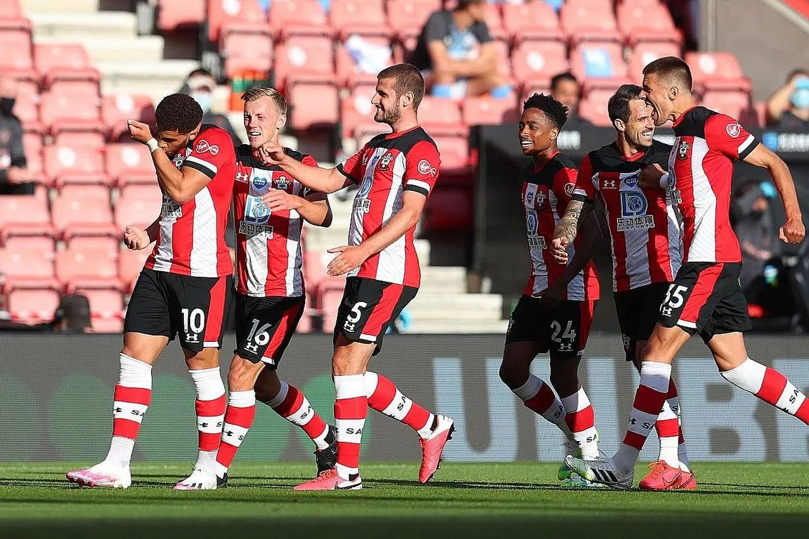 WIRA PASUKAN: Che Adams (kiri) bersama rakan sepasukan meraikan satu-satu gol dalam kemenangan Southampton ke atas Manchester City di St. Mary's kelmarin. - Foto REUTERS -