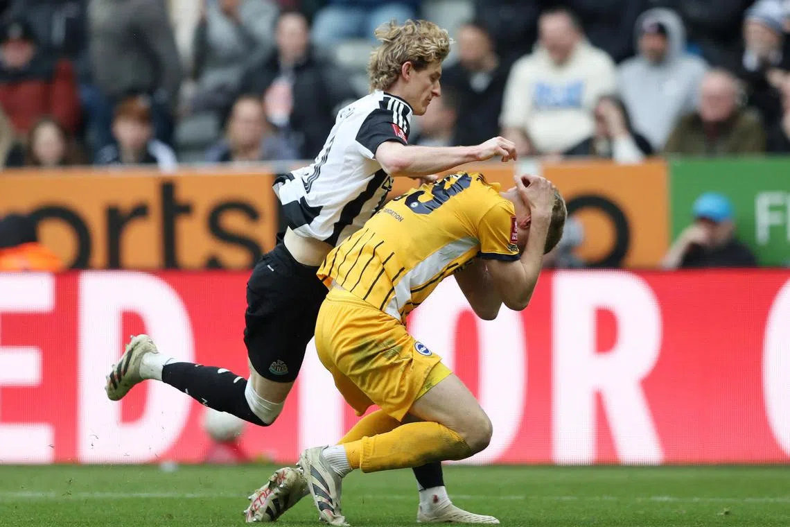 NEWCASTLE (England): Pemain sayap Newcastle United, Anthony Gordon, kelihatan akan terlepas perlawanan akhir Piala Liga menentang Liverpool selepas dilayangkan kad merah kerana aksi ganas menentang Brighton and Hove Albion pada 2 Mac.