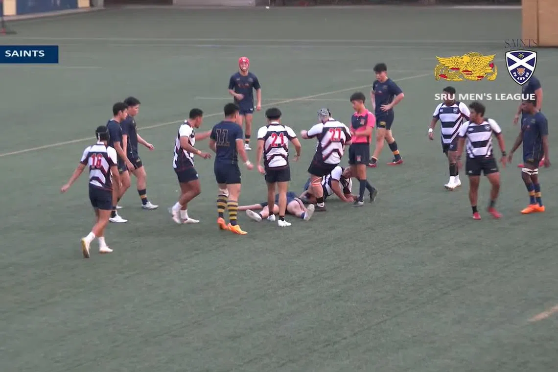 Kesatuan Ragbi Singapura (SRU) sedang menyiasat satu pergaduhan yang tercetus selepas seorang pemain Kelab Bola Sepak Ragbi Saints menendang seorang pemain Kelab Ragbi Oldham yang terbaring dalam satu pertandingan pada Sabtu.