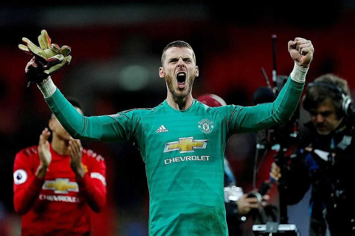 TERUSKAN PERSEMBAHAN CEMERLANG: Penjaga gawang United, De Gea, mahu rakan sepasukannya meneruskan persembahan cemerlang mereka dan menetapkan matlamat untuk mencapai kelayakan Liga Juara-Juara musim depan. - Foto REUTERS -