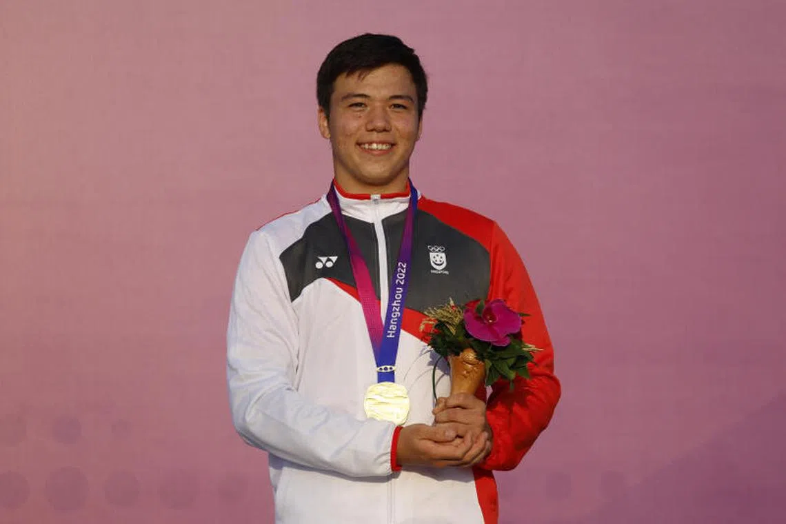 Peluncur lelayang, Maximilian Maeder, 17 tahun, memenangi pingat emas pertama Singapura di Hangzhou.