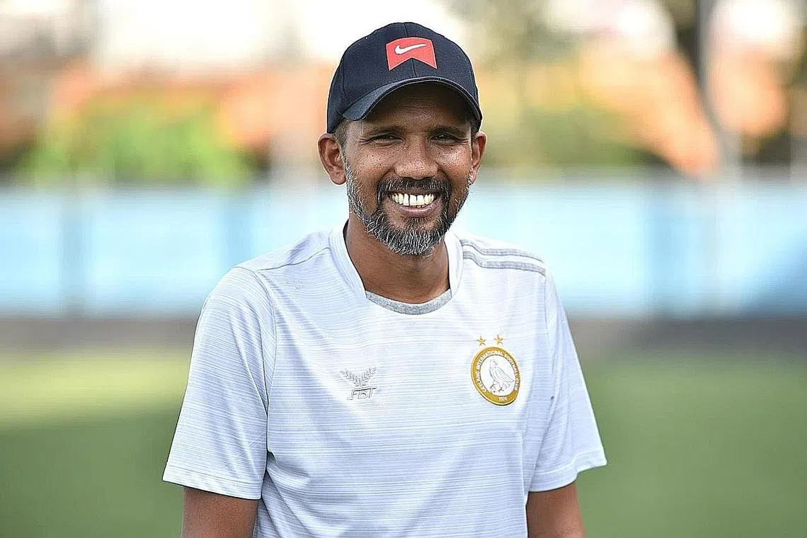 Noor Ali, yang juga merupakan bekas pemain bola sepak nasional, bersama pasukan di tepi padang di Our Tampines Hub (OTH) pada Ahad lalu.