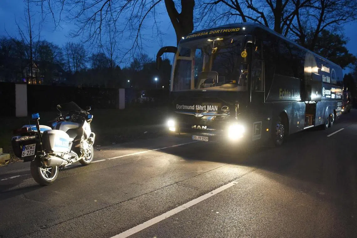 Dalam kejadian itu bas rasmi yang membawa pasukan Borissia Dortmund dari L'Arrivee Hotel and Spa, di pinggir bandar berhampiran Stadium Dortmund.