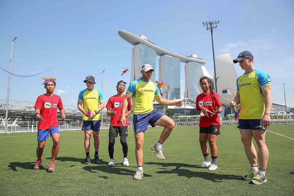 Itulah yang dilakukan empat pemain daripada skuad ragbi Australia yang tiba di sini sempena Kejohanan Ragbi Dunia Tujuh Sepasuk Singapura HSBC hujung minggu ini.