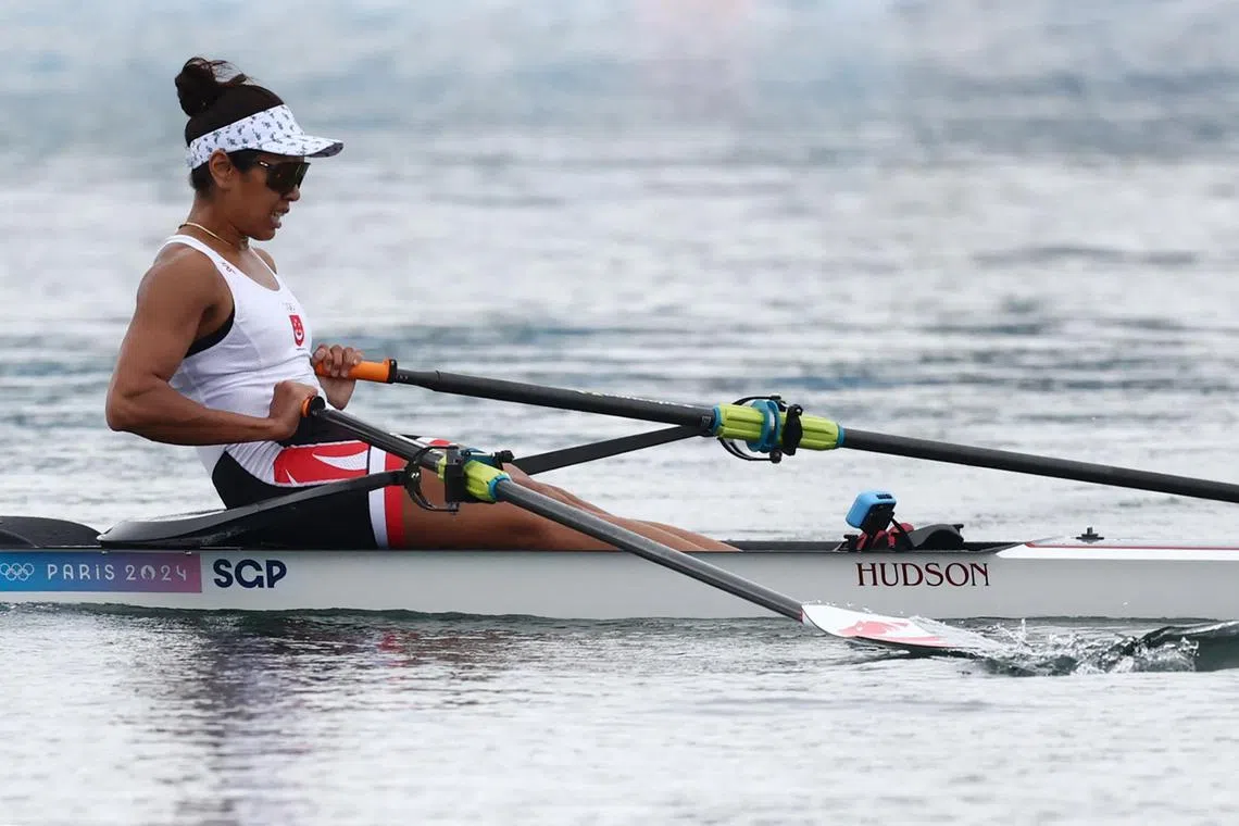 Pendayung Singapura, Saiyidah Aisyah Mohamed Rafa’ee, menduduki tempat ketiga dalam pusingan saring semula (repechage) acara scull tunggal wanita Sukan Olimpik Paris 2024 pada 28 Julai.