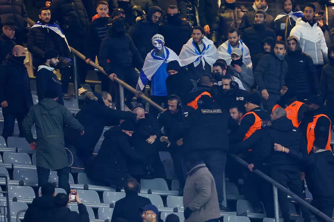 PARIS: Sebahagian penyokong pasukan Perancis mencemuh lagu kebangsaan Israel dan berlaku pergaduhan kecil di stadium Stade de France pada satu perlawanan Liga Negara-Negara yang dibayangi pergolakan di Gaza pada 14 November.