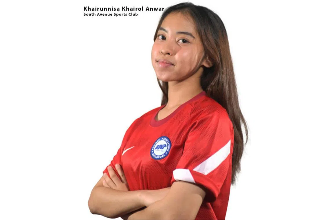 "Ia adalah impian saya sejak kecil lagi untuk bermain untuk Singapura di peringkat senior. Saya mula sertai sistem bola sepak nasional pada usia agak muda, dan telah sertai pertandingan untuk pasukan nasional bawah 14 tahun. "Jadi untuk lihat diri saya berkembang dan capai ke tahap ini, ia tentunya pengalaman yang luar biasa." - Khairunnisa, pemain bek kanan, pelajar tahun kedua dalam jurusan bisnes di Politeknik Temasek. (Foto WOMEN'S FOOTBALL IN SINGAPORE/FACEBOOK)