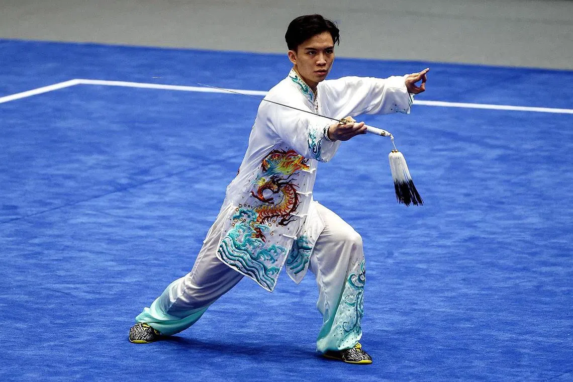 ATLET wushu negara Chan Jun Kai merangkul pingat emas dalam acara taijijian lelaki di Sukan SEA Vietnam semalam.