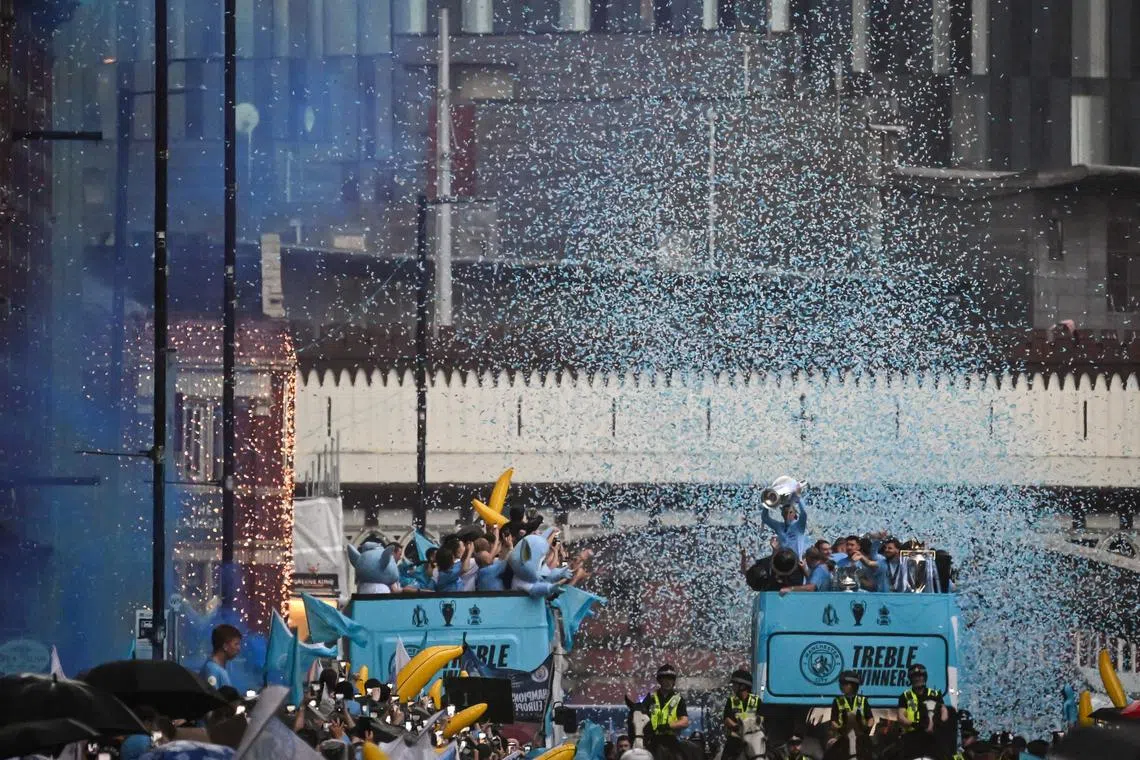 Ribuan penyokong, pemain City berpesta dalam hujan rai kemenangan 3 piala
