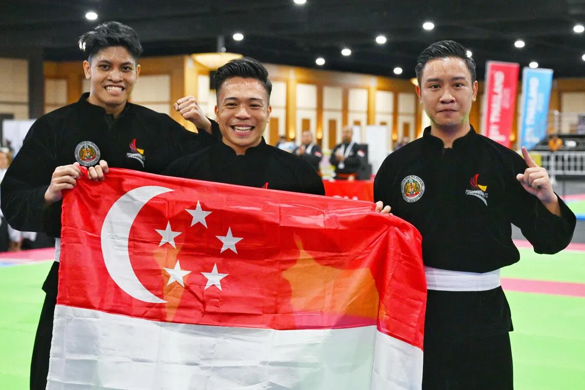 Regu yang dibentuk oleh trio pesilat iaitu Muhammad Affiz Mohamed Zakri, Muhammad Nazrul Mohd Kamal dan Muhammadinil Mustafar Mohd Isa meraih 9.935 mata berbanding regu Indonesia yang mengumpul 9.965 mata di final yang diadakan di Dewan Impact Forum di Bangkok.