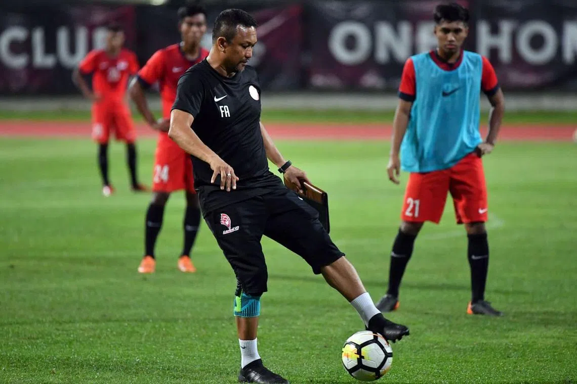 BUAT PERSIAPAN: Pasukan negara pimpinan Fandi Ahmad bakal adakan empat perlawanan persahabatan tidak lama lagi. - Foto BH oleh DESMOND FOO -