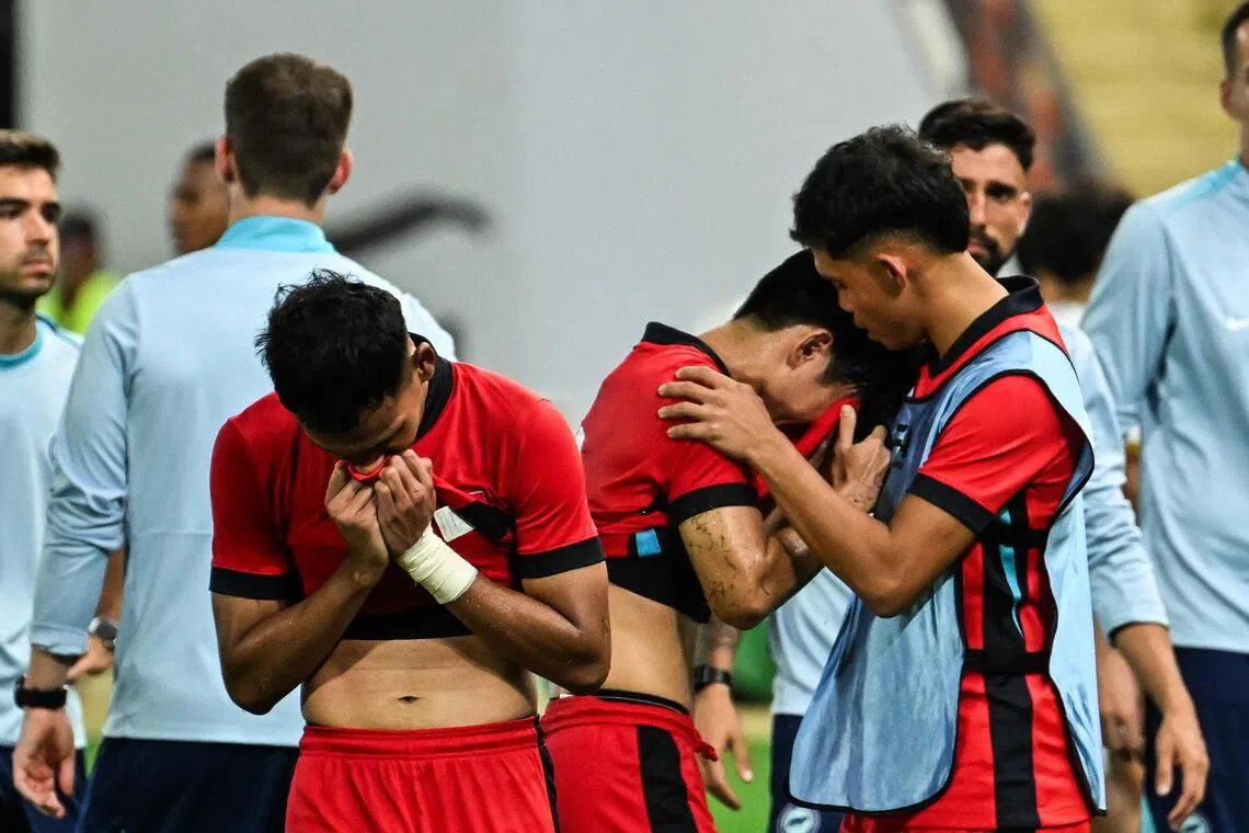 Sejurus selepas wisel penamat antara Singapura dengan Timor-Leste dibunyikan, beberapa pemain bawah 22 tahun negara terduduk manakala ada pula yang menunduk dan menitiskan airmata penuh kehampaan.