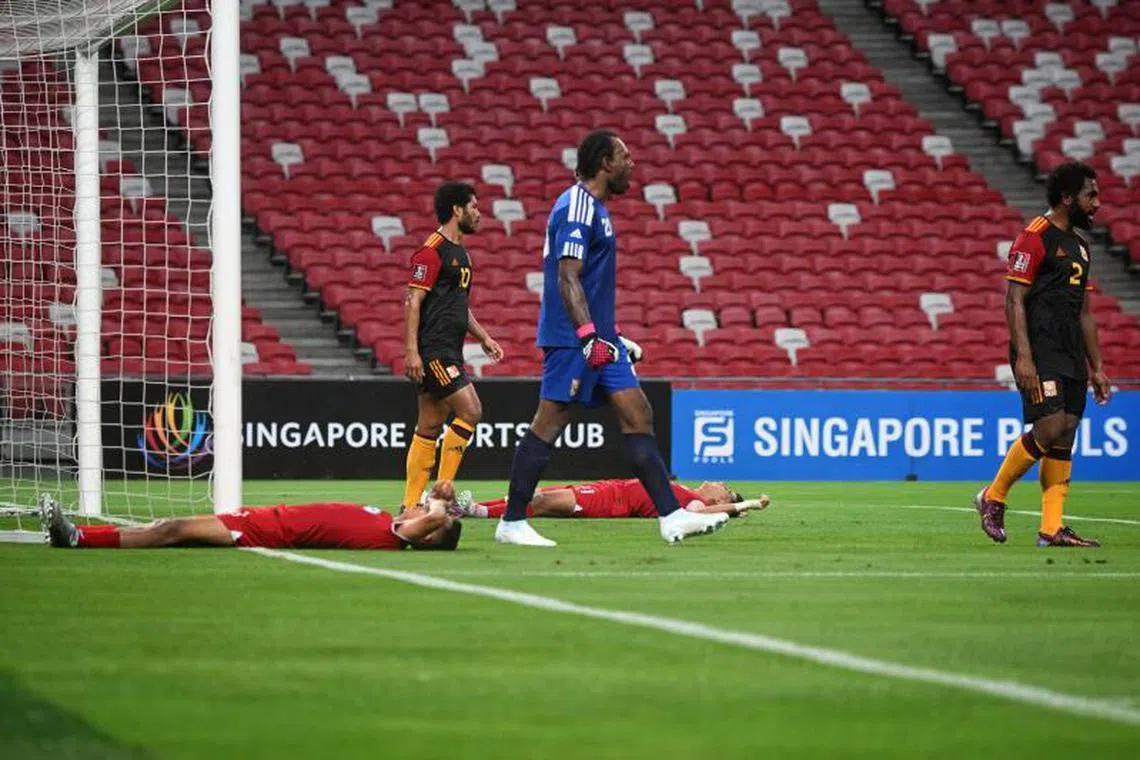 Mencerminkan suasana suram itu, aksi pasukan Singa - yang menduduki tangga ke-158 di ranking Fifa - di padang pula tidak memenuhi jangkaan, dengan kapten Hariss Harun dan rakan sepasukan gagal mengambil kesempatan untuk memberi tekanan bermakna ke atas lawan yang terletak satu tangga di bawahnya.