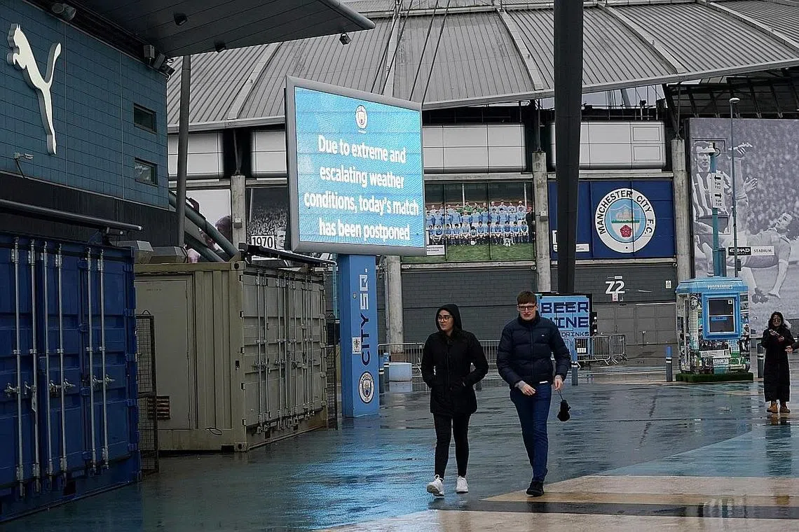 LONDON: Perlawanan Liga Perdana England (EPL) antara Manchester City dan West Ham United adalah di antara acara sukan utama yang ditangguhkan berikutan taufan Ciara yang melanda Britain.
