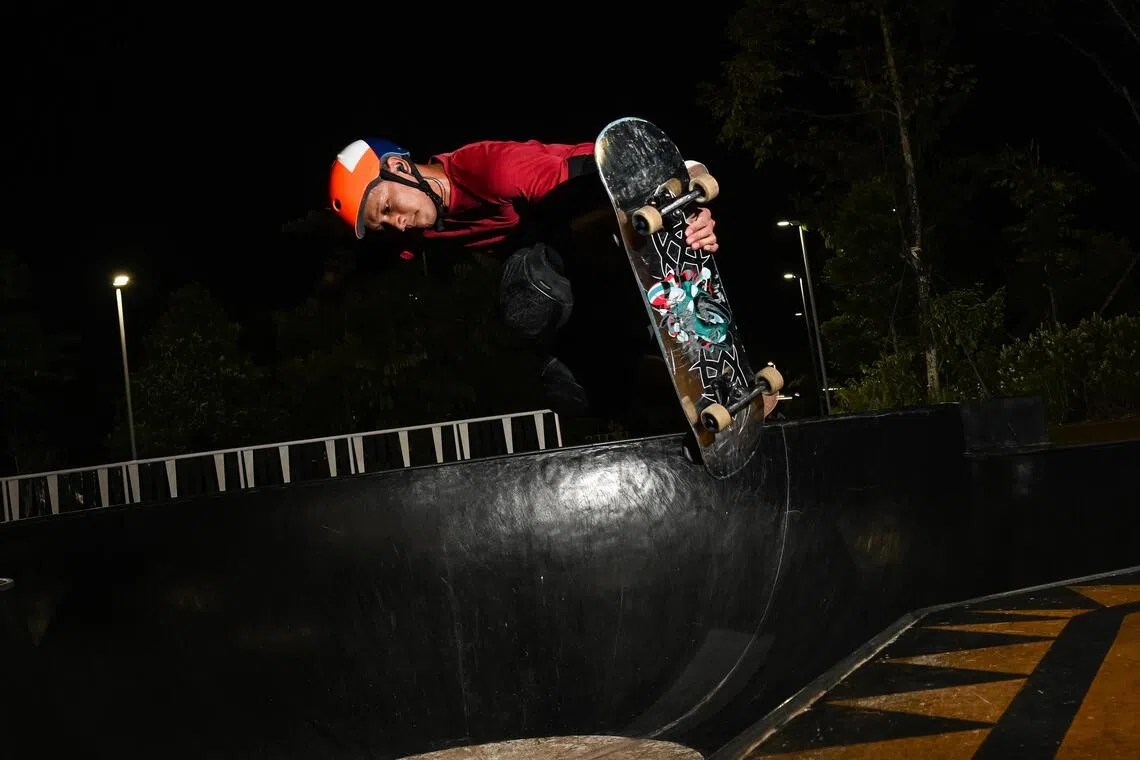 Atlet luncur selaju kebangsaan, Muhammad Farris Abdul Rahman, tampak selesa beraksi di Taman Luncur Lakeside Garden, dengan yakin melakukan gaya berani, ketika Berita Harian (BH) menemuinya pada malam 4 November.