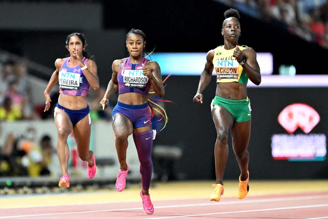 Juara dunia 200 meter Shericka Jackson dari Jamaica mencatat masa terpantas 22.00 saat dalam separuh akhir itu, diikuti warga Amerika Sha’Carri Richardson (22.20 saat), yang memenangi acara 100 meter pada Isnin.