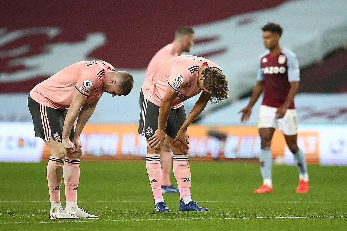 TEWAS: Pemain Sheffield United John Lundstram (kiri) dan Sander Berge kelihatan kecewa selepas perlawanan menentang Aston Villa. Sheffield United tewas1-0. - Foto REUTERS -