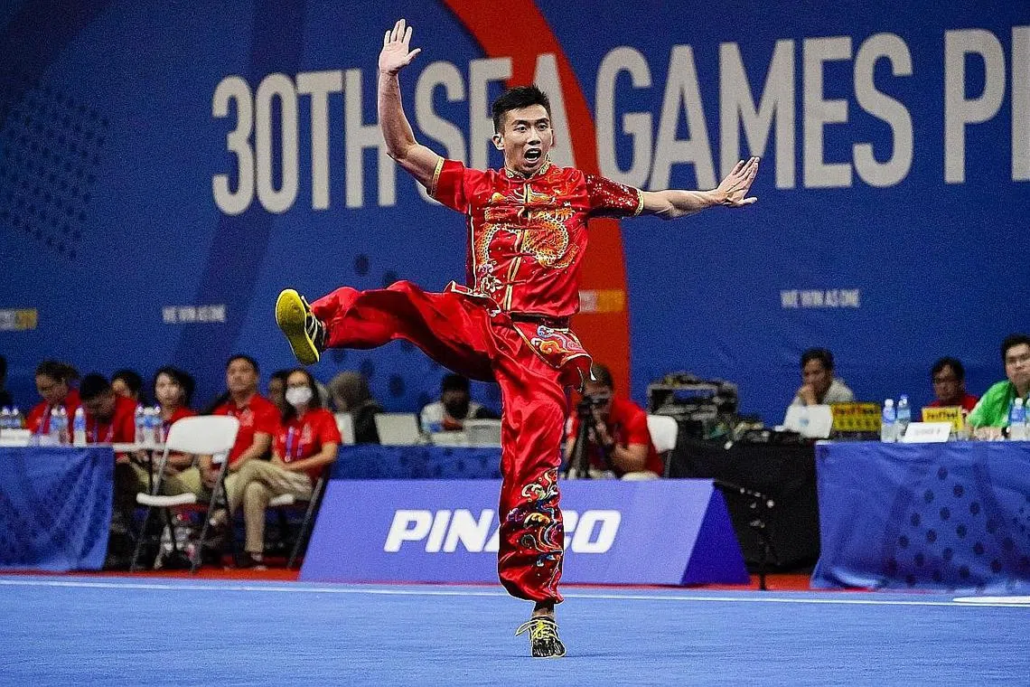 WUSHU menghadiahkan pingat emas pertama Singapura di hari pertama persaingan Sukan SEA ke-30 di Filipina sekitar 11 pagi semalam.