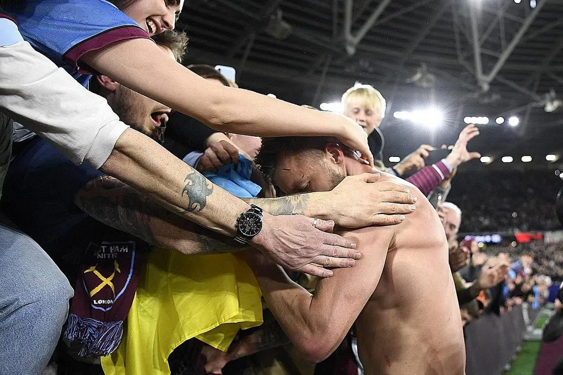 Yarmolenko memberikan jersinya kepada peminat dengan bendera Ukraine ketika meraikan kemenangan kelabnya itu.