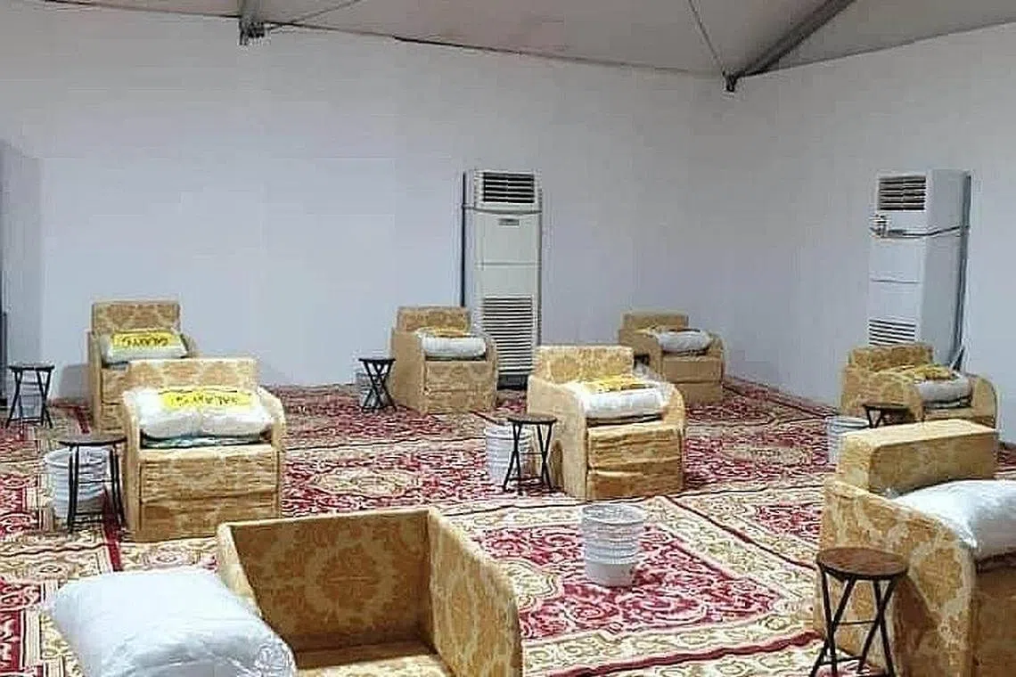 PERSIAPAN TETAP RAPI: Walaupun jumlah jemaah haji tahun ini dihadkan kepada 1,000 sahaja, persiapan tetap dibuat dengan rapi di Makkah demi mengelakkan Covid-19. Ini termasuk memastikan khemah di Arafah tersedia menerima jemaah haji serta penyediaan tempat tidur dan tempat duduk bagi jemaah yang bakal menginap di dalam khemah semasa wuquf kelak. - Foto-foto FACEBOOK HARAMAIN SHARIFAIN -