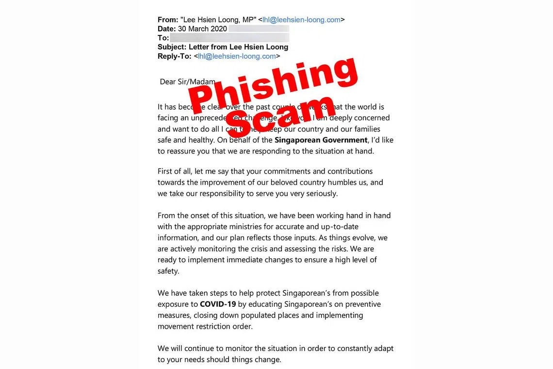 SATU e-mel palsu mengenai keadaan Covid-19 yang kononnya dihantar Perdana Menteri Lee Hsien Loong kini sedang tersebar dalam talian.