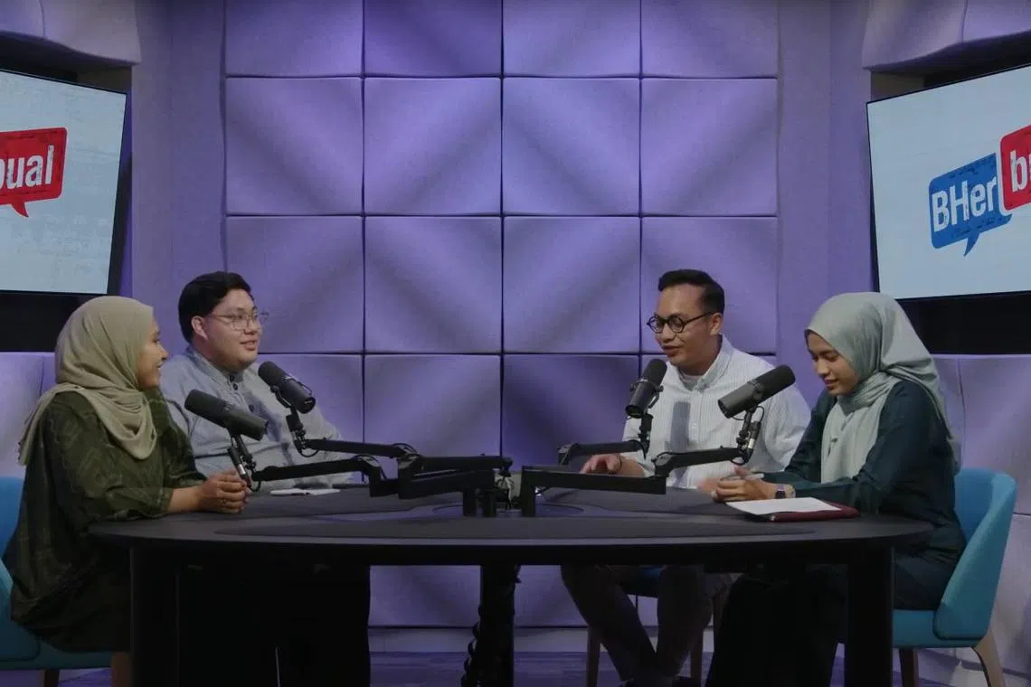 (Dari kiri) Koresponden Cik Nur Fathin Awalludin, penyunting Encik Hakim Norman Hassan, wartawan Encik Harith Mustaffa dan Cik Batrisyia Baharim semasa vodcast BHerbual yang membincangkan tentang penggunaan bahasa Melayu oleh generasi kini. - Foto BM oleh SITI AISYAH NORDIN