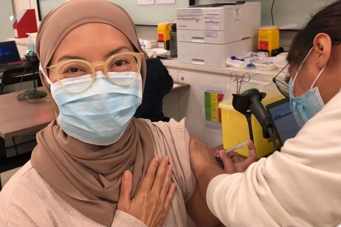 SEBAGAI doktor dalam sektor penjagaan kesihatan Singapura, Dr Elly Sabrina Ismail, berasa lega dan tenang selepas mendapat suntikan dos pertama vaksin Covid-19 Pfizer-BioNTech pertama pada 14 Januari lalu di Poliklinik Bukit Batok.