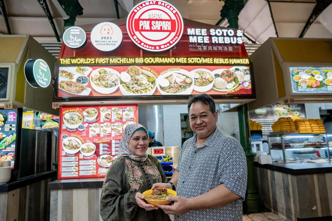 KEKALKAN TRADISI: Encik Sumadi Sapari dan isterinya, Cik Kathy Bonyamin, pemilik gerai Warong Pak Sapari, yang menjual makanan Melayu seperti mi soto dan mi rebus. Mereka meningkatkan kesedaran bukan sahaja dalam kalangan masyarakat tempatan, bahkan masyarakat antarabangsa juga sebagai usaha mengekalkan tradisi makanan Melayu. - Foto BH oleh NUR DIYANA TAHA