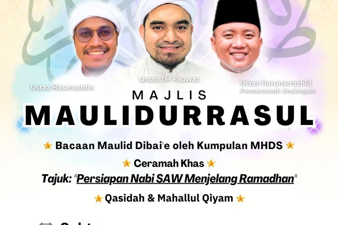 Satu majlis maulid akan diadakan di Masjid Al-Khair, dengan ceramah khas oleh Ustaz TM Fauwaz, Ustaz Hasanuddin dan Ustaz Harunarrashid, berjudul, ‘Persiapan Nabi saw menjelang Ramadan’.