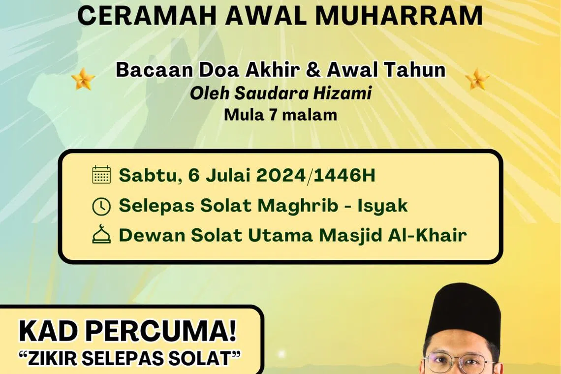 Masjid Al-Khair akan mengadakan ceramah istimewa sempena awal Muharam, Upgrade Dengan Amalan Nabi saw, pada 6 Julai, selepas solat maghrib hingga isyak. - Foto MASJID AL-KHAIR
