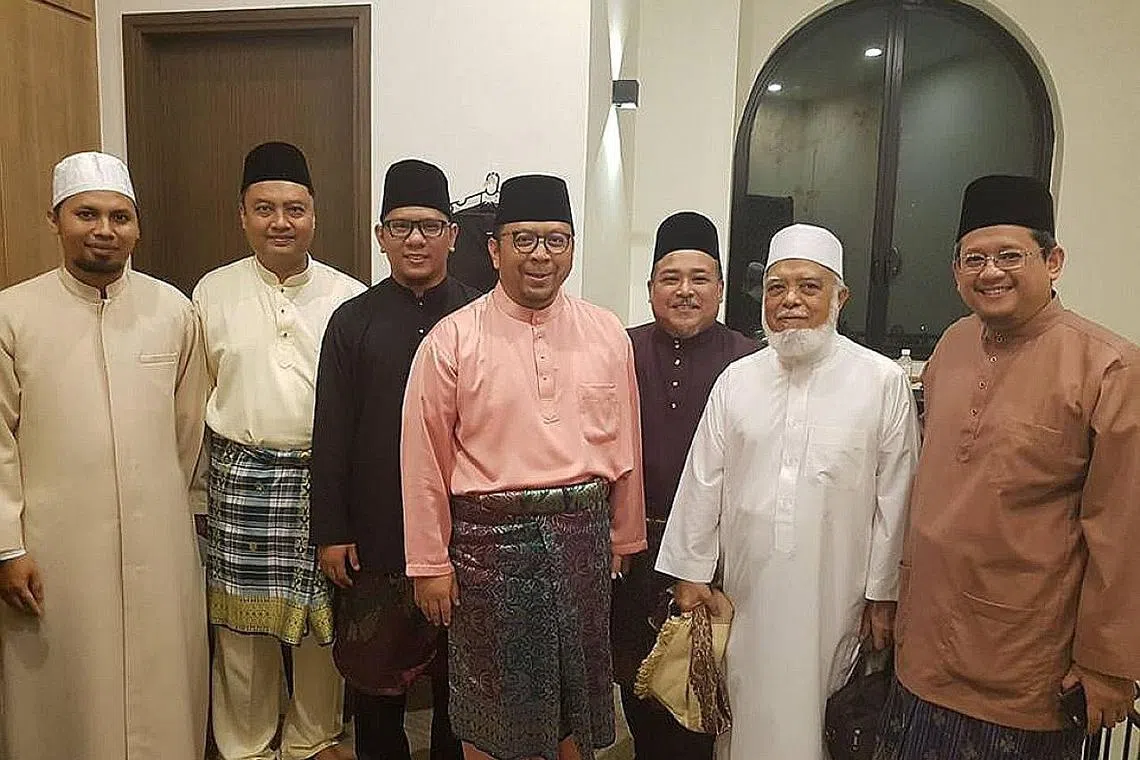 SESI BICARA ULAMA: Ustaz Mohammad Hannan Hassan (tengah) bergambar antaranya bersama Mufti Dr Mohamed Fatris Bakaram (paling kanan) dan mantan Mufti Syed Isa Semait (dua dari kanan), sebelum sesi 'Bicara Ulama' di Masjid Yusof Ishak baru-baru ini. - Foto FACEBOOK MASJID YUSOF ISHAK -