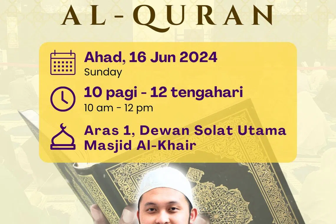 Atas tujuan ini, Masjid Al-Khair akan menganjurkan majlis Khatam Al-Quran pada 16 Jun mulai 10 pagi.
