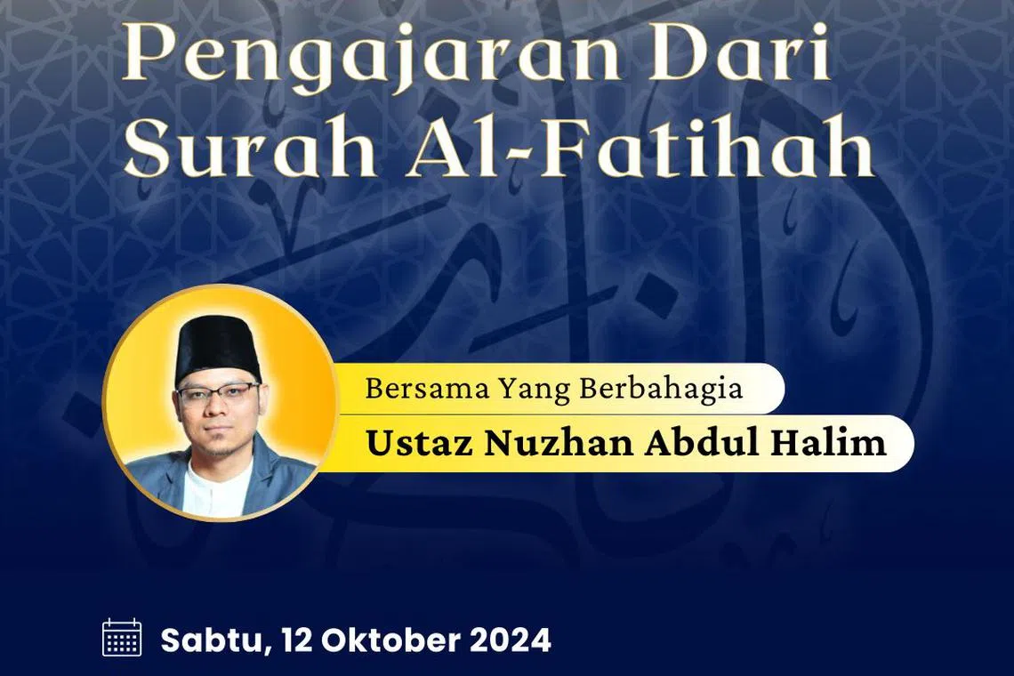 Ayuh ikuti sesi terakhir Siri Tadabbur QuranSG bersama Ustaz Muhamad Nuzhan Abdul Halim dalam syarahan bertajuk, ‘Pengajaran Dari Surah Al-Fatihah’.