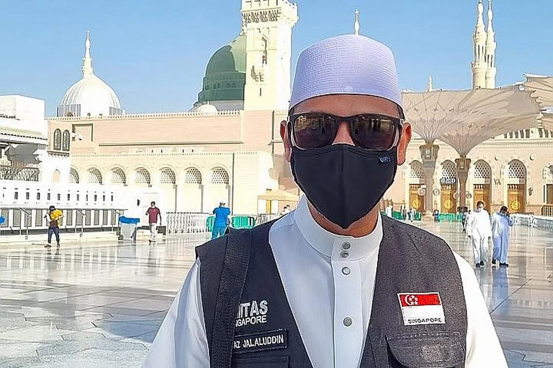 - Ustaz Jalaluddin Hassan, pemilik Jalaluddin Travel & Services Ptd Ltd. Gambar dirakam ketika mengikuti rombongan Persatuan Ejen-Ejen Pelancongan Muslim Singapura (Amtas) ke Arab Saudi baru-baru ini. -