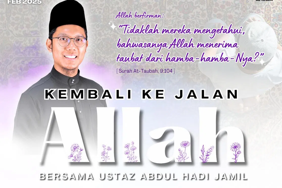 Sertai majlis ilmu bersama, Ustaz Abdul Hadi Jamil, dalam kelas bertajuk ‘Kembali Ke Jalan Allah’ pada 16 Februari di Masjid Al-Khair. - Foto MASJID AL-KHAIR